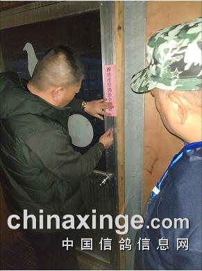 为潍坊市玉鑫赛鸽公棚贴封条。