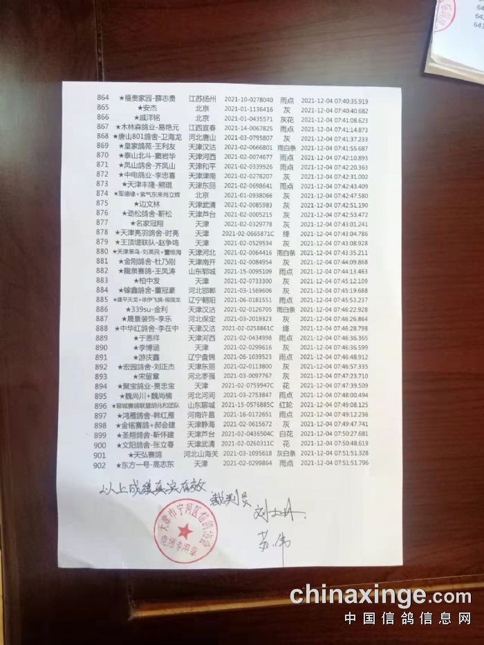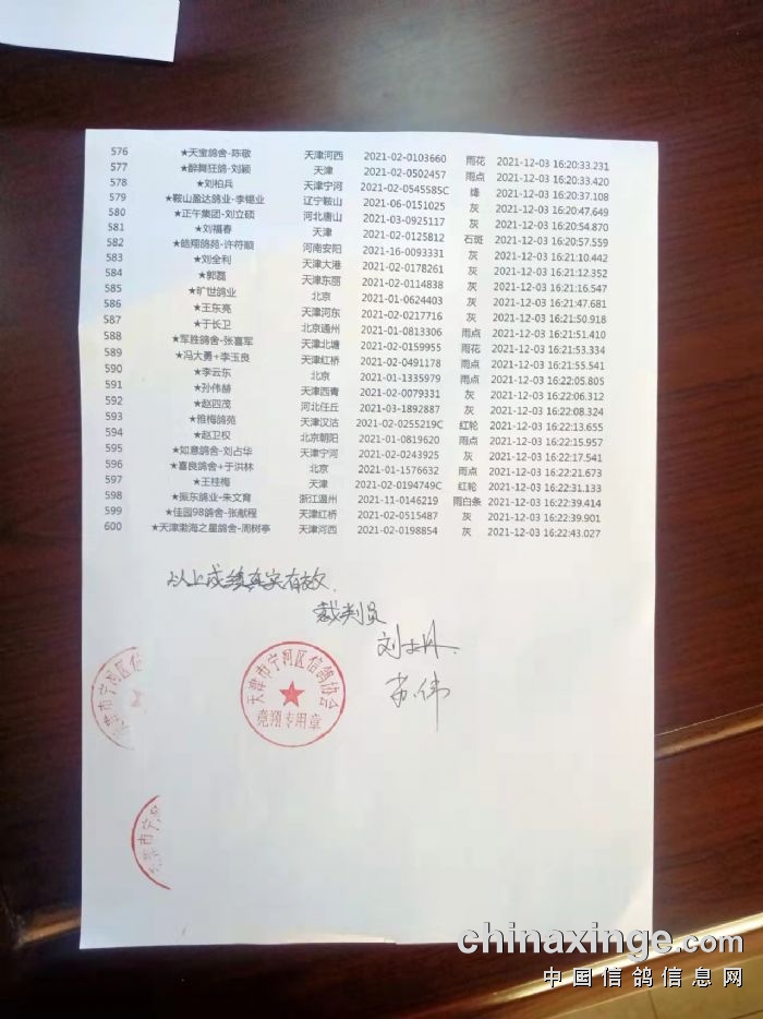 天津信泽慧海公棚180-200公里热身赛归巢数据直播