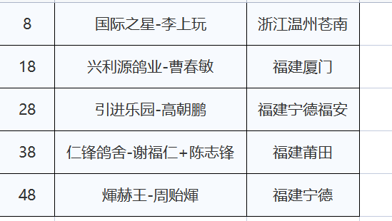 福建鼎诚赛鸽公棚(小棚)11月1日第二关380公里扫描链接