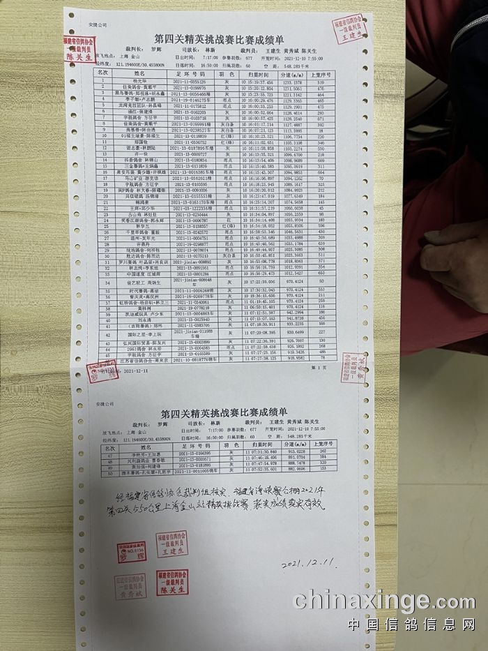 | 2021年福建省海峡赛鸽公棚第四关550KM精英挑战赛获奖鸽名单 |