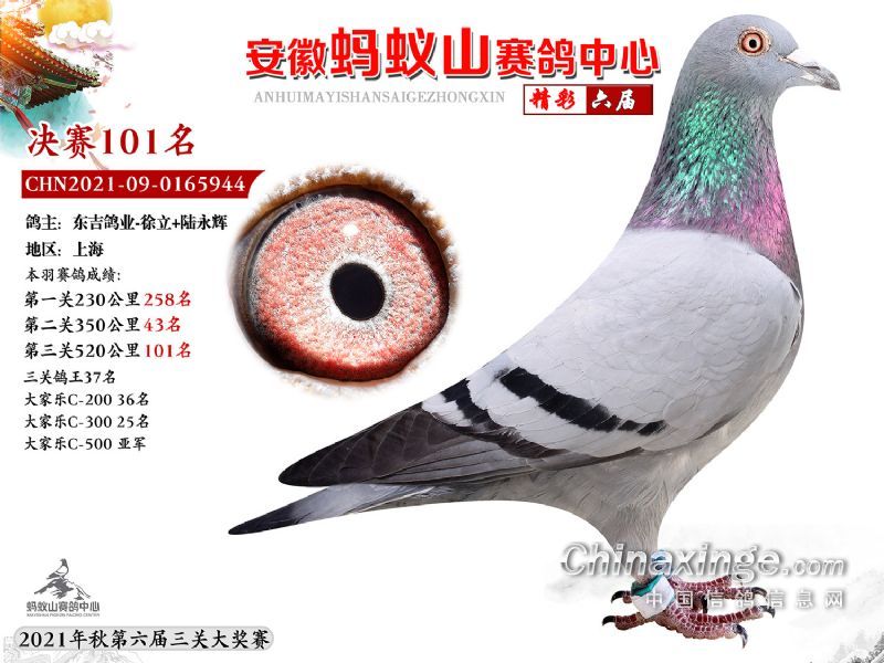 • 安徽蚂蚁山赛鸽中心(大棚)特比环规程 (2025-11-16 9:45:45)