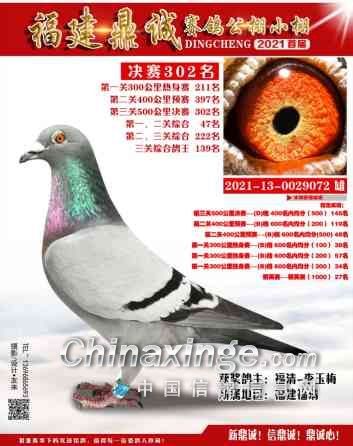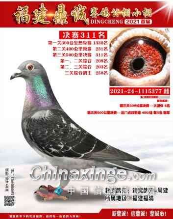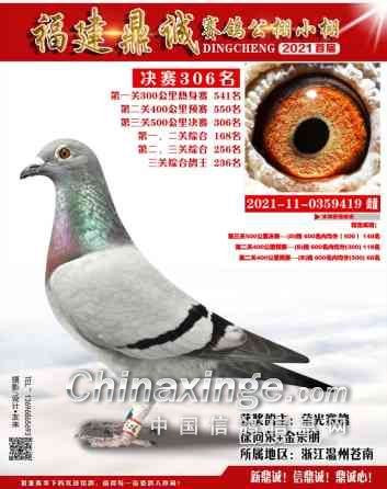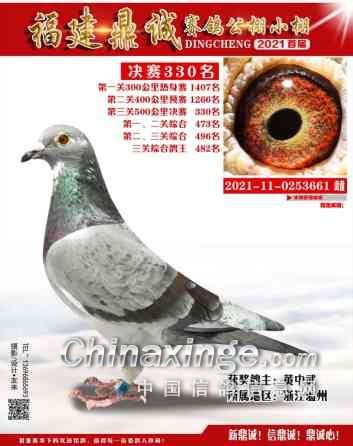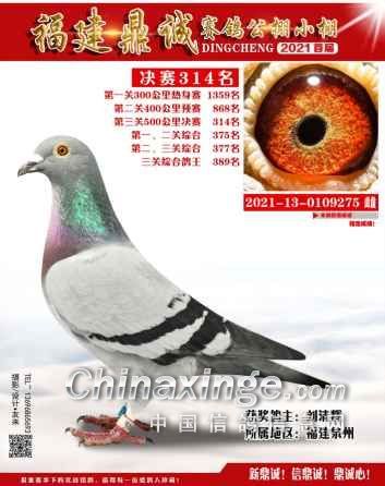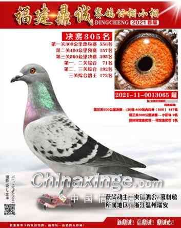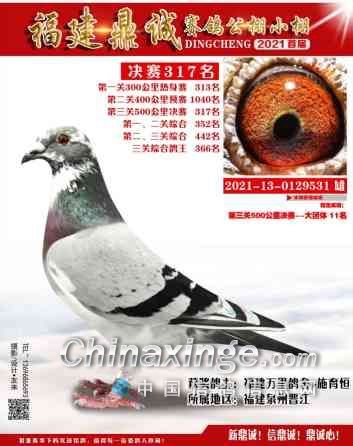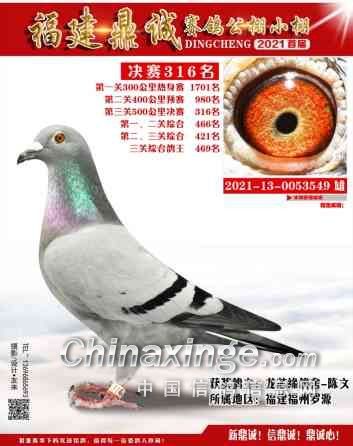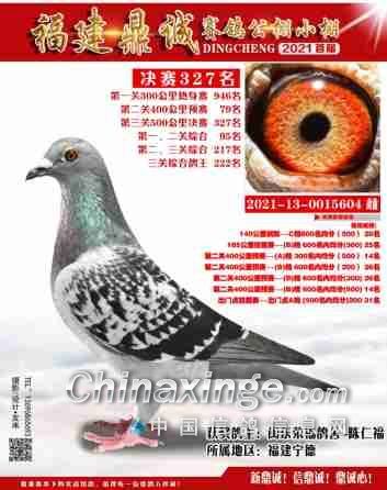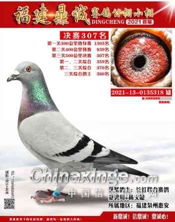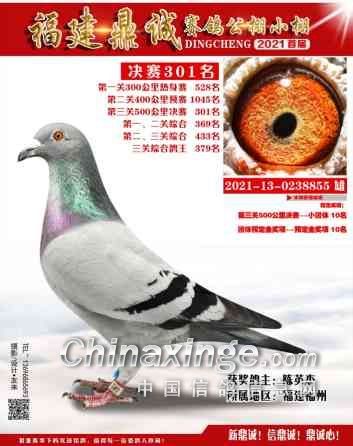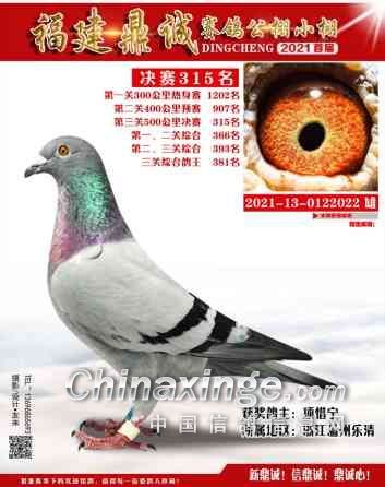 鼎诚赛鸽公棚(小棚)获奖鸽照片赏析(301-400名)