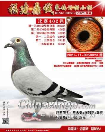 鼎诚赛鸽公棚(小棚)获奖鸽照片赏析(401-500名)