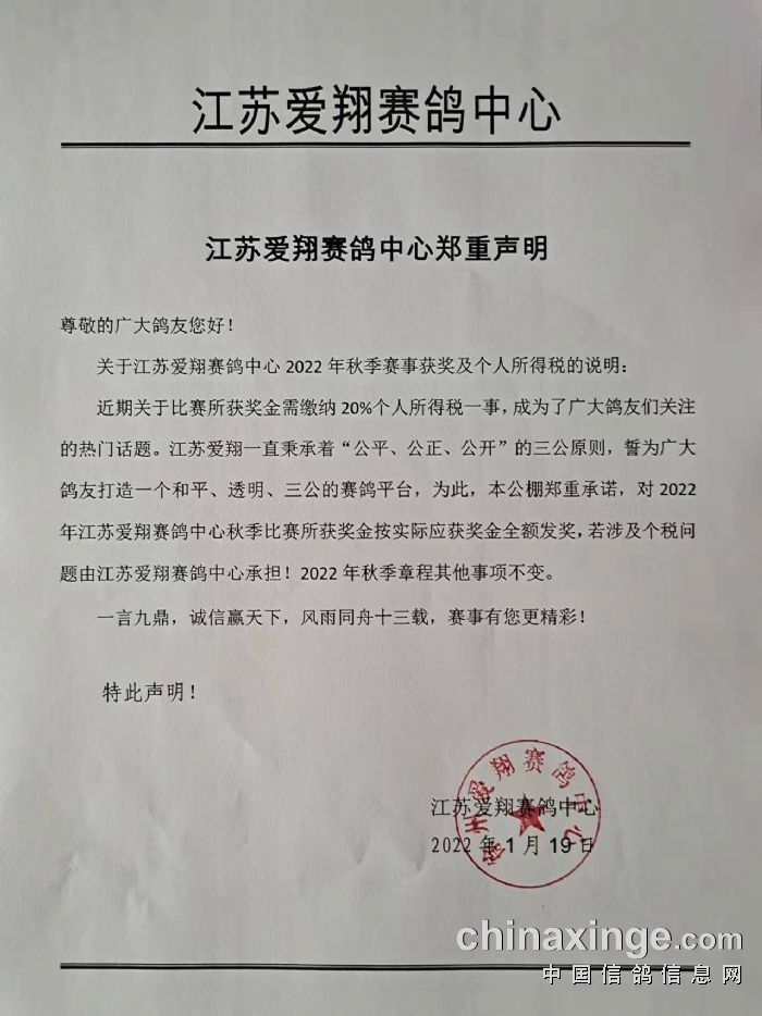 江苏爱翔(秋棚):4月3-5日接鸽公告
