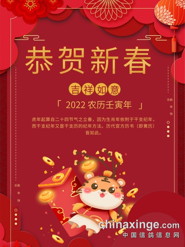 值此新春佳节之际,环宇公棚郭岩祝您和家人虎年吉祥,幸福安康,祝您在新的一年,鸽运亨通,再创佳绩!