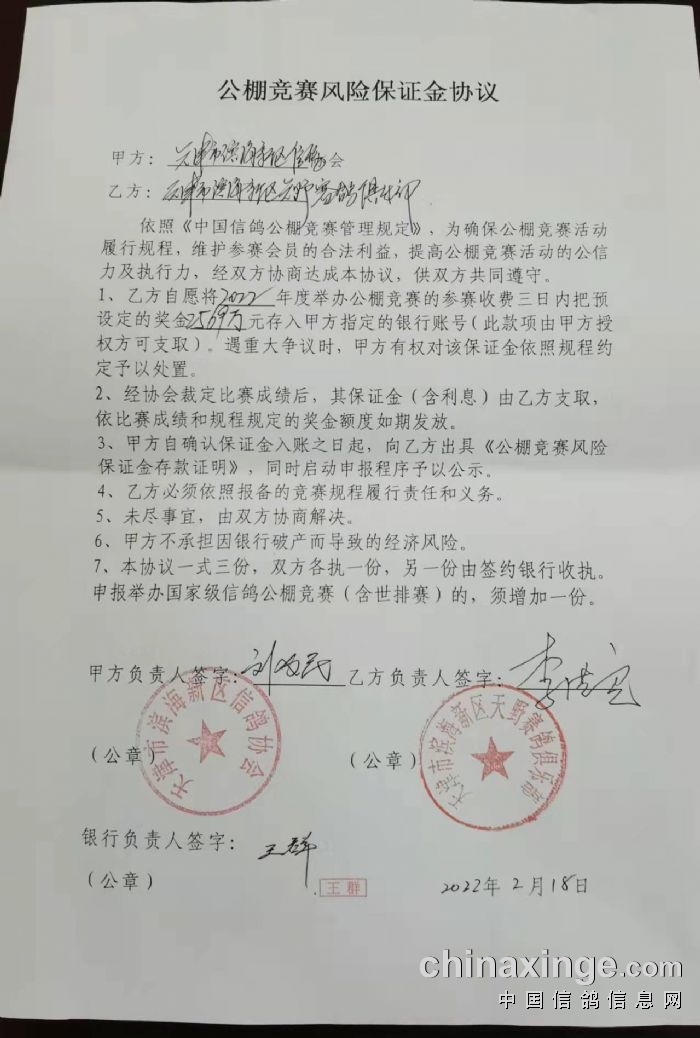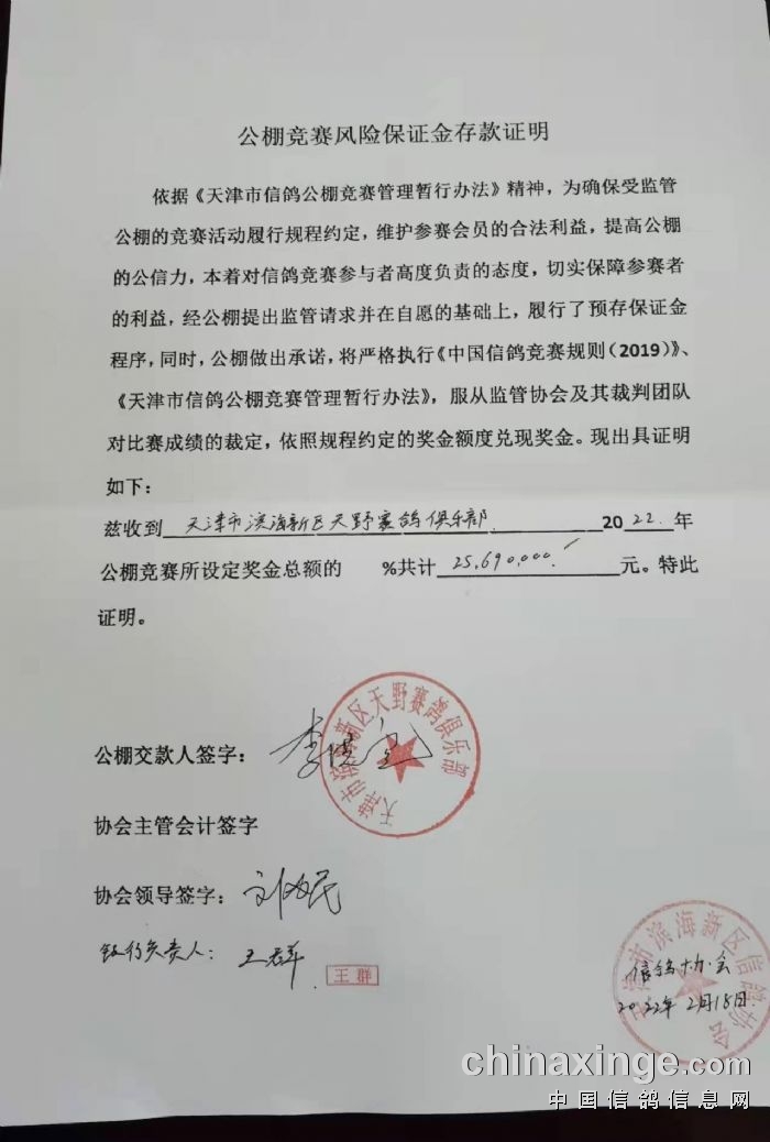 银行三方见证下,按照滨海信鸽协会要求进行资金冻结公告。