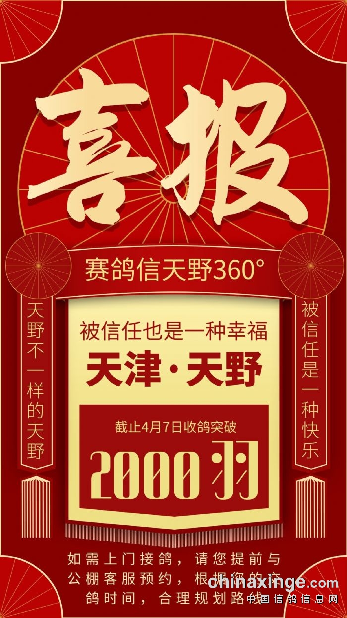 天津天野公棚喜报(截止3月29日收鸽突破1000)