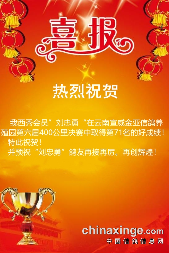 西秀赛鸽:热烈祝贺“刘忠勇”