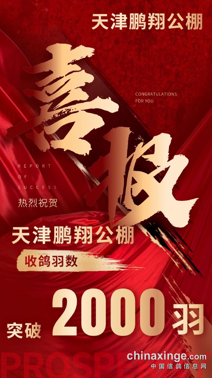 恭喜天津鹏翔公棚收鸽羽数突破2000羽