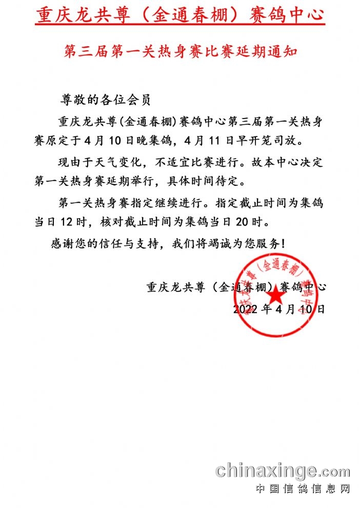 重庆金通春棚第七届第三关开笼公告