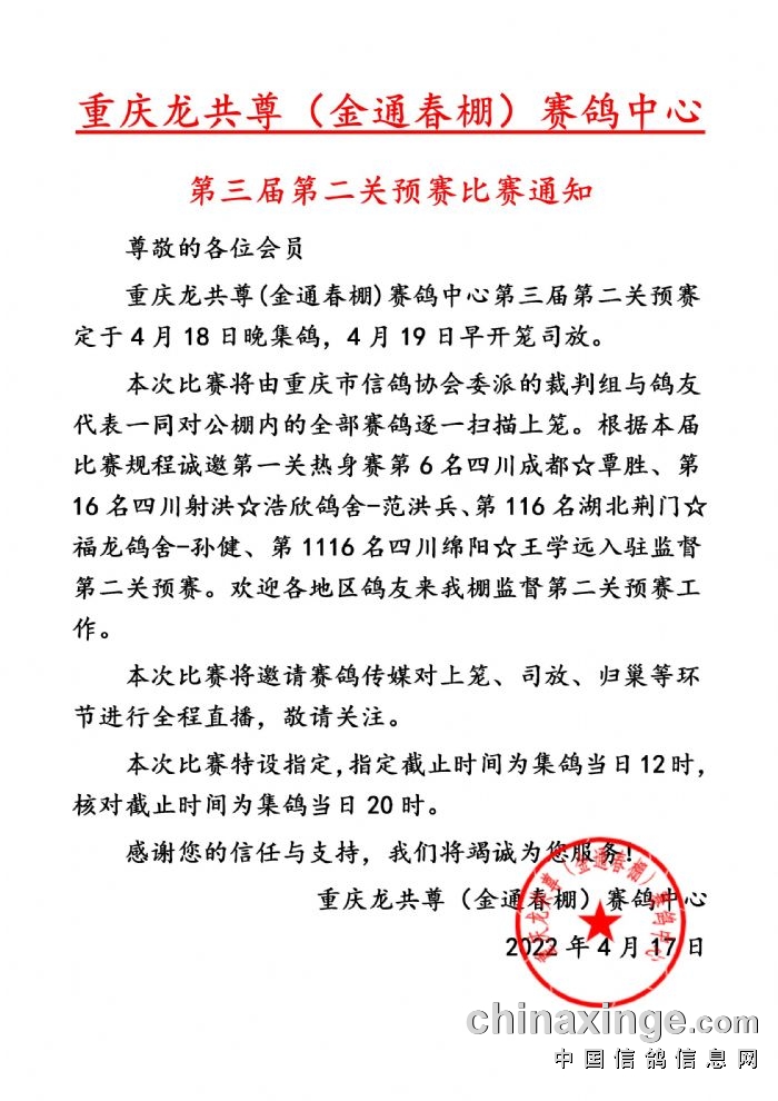 重庆龙共尊(金通春棚)赛鸽中心