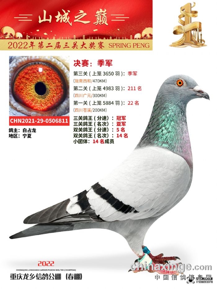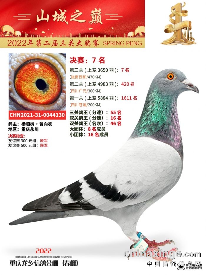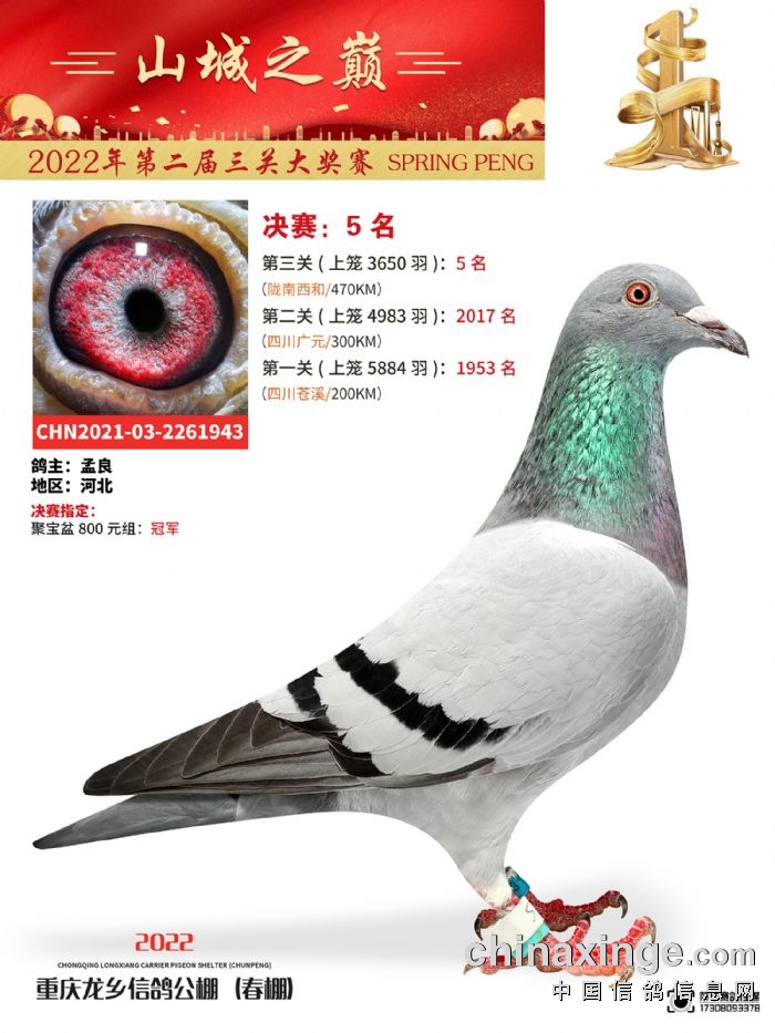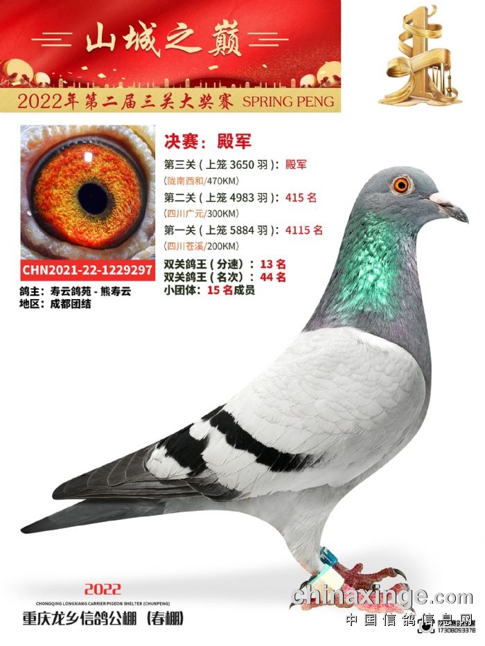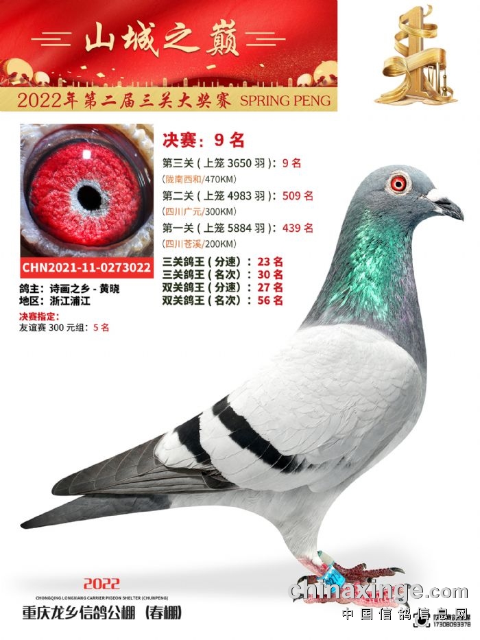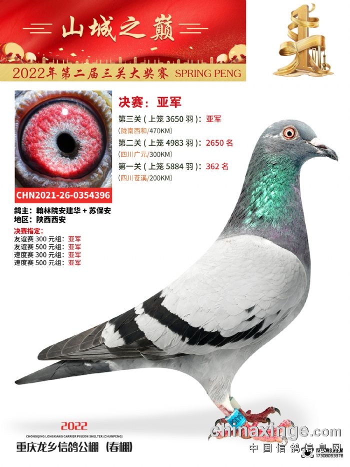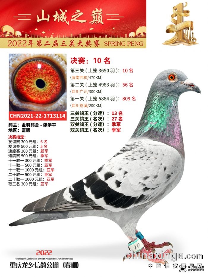 重庆龙乡信鸽公棚(春棚)2022年第二届决赛前十获奖鸽