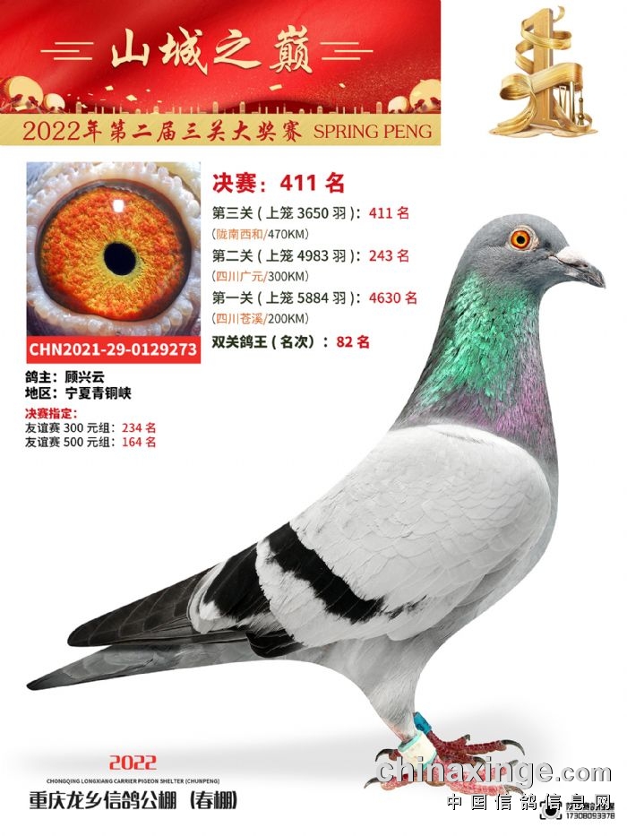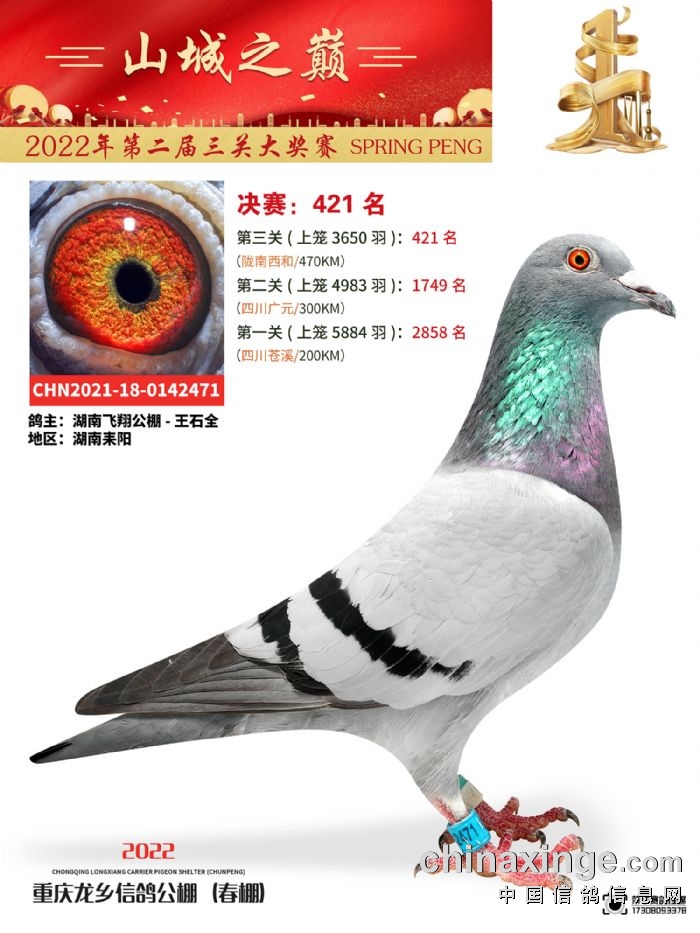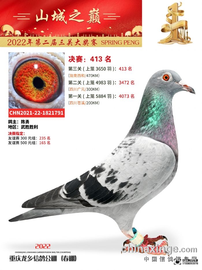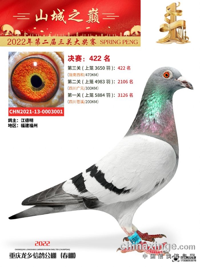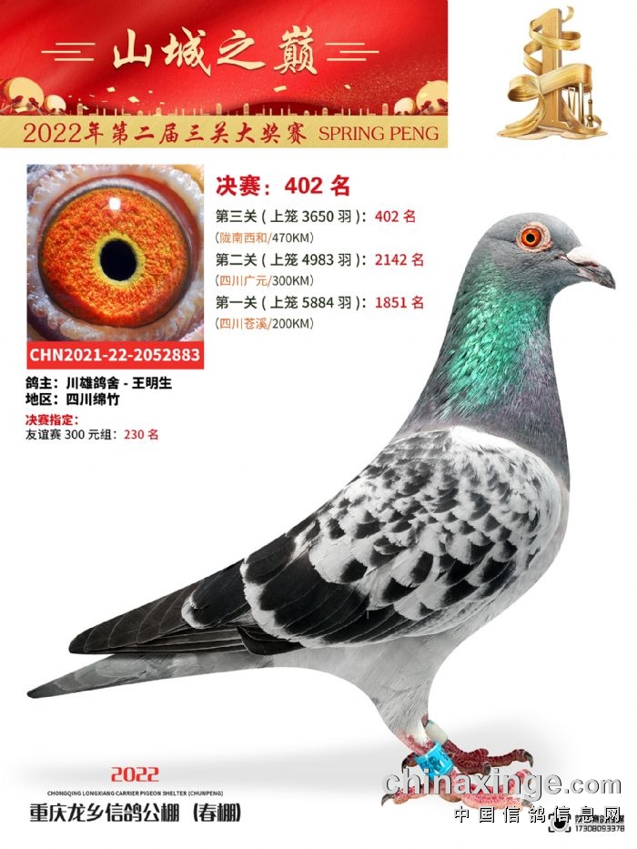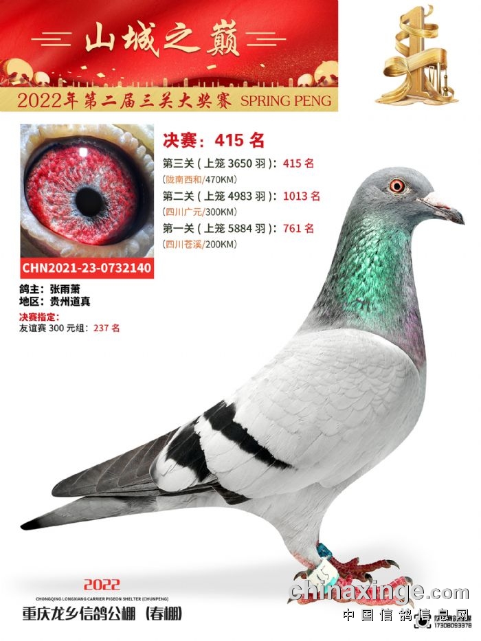 重庆龙乡信鸽公棚(春棚)2022决赛402-426名