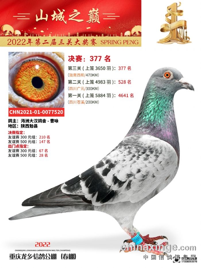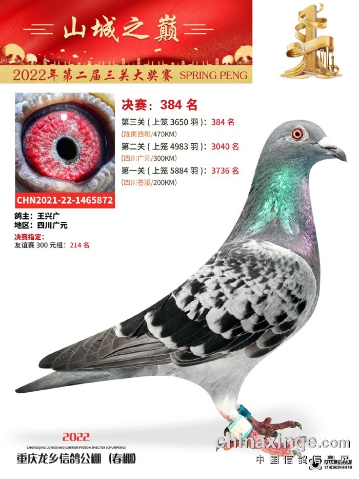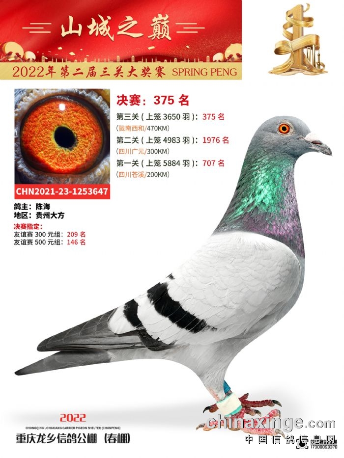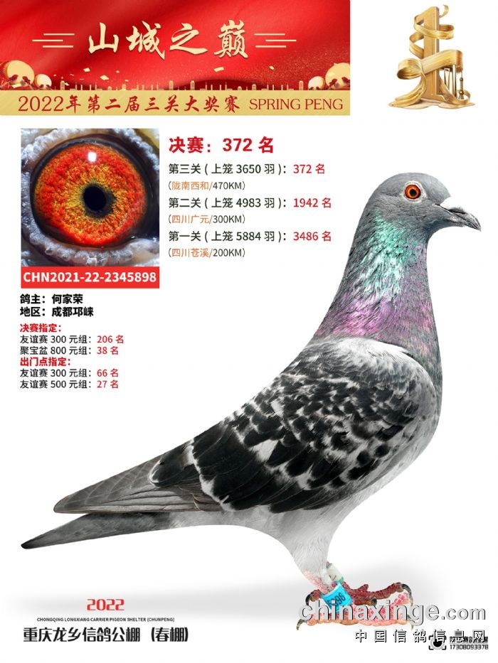 重庆龙乡信鸽公棚(春棚)2022决赛371-385名