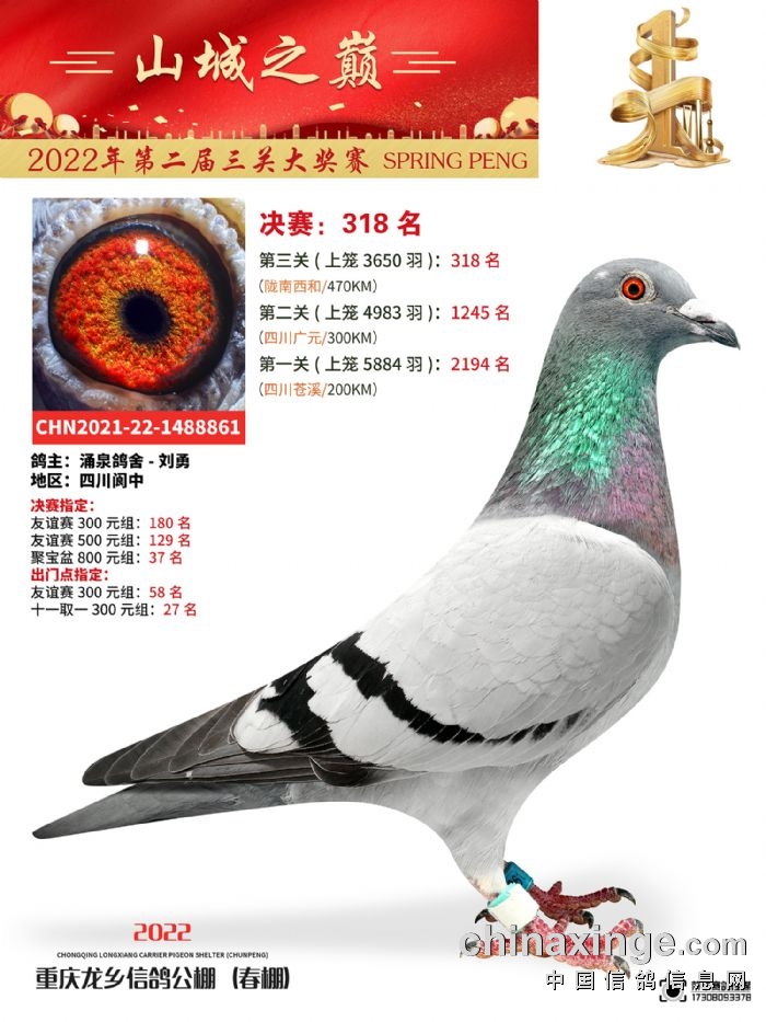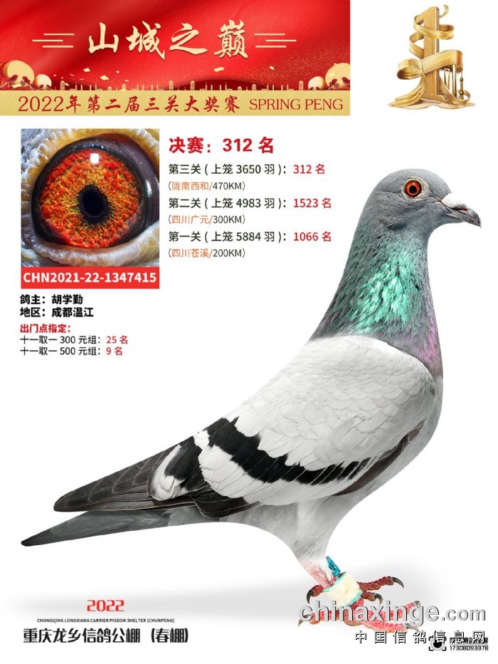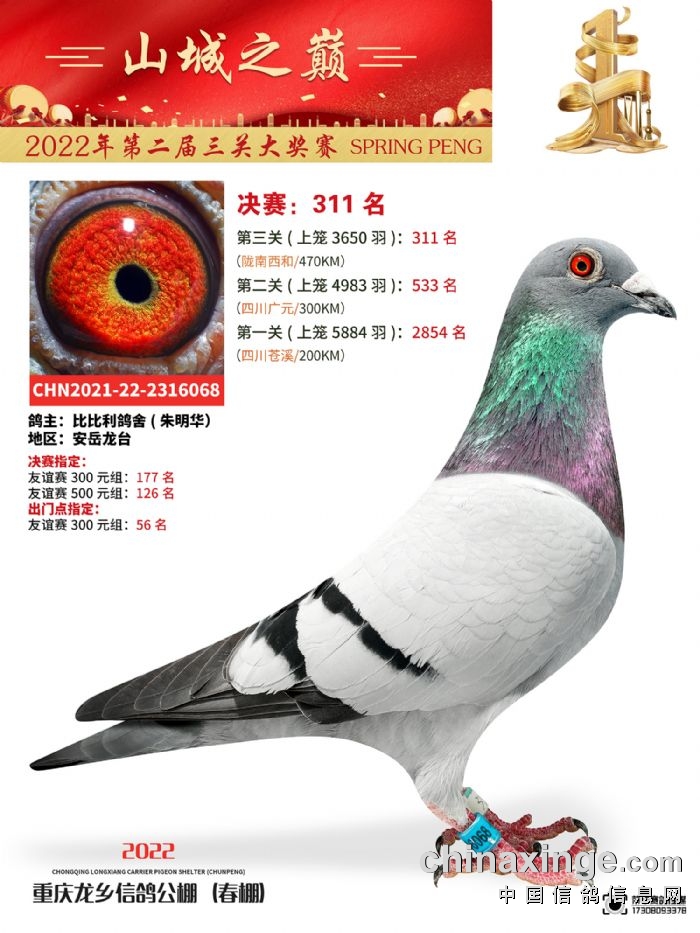 重庆龙乡信鸽公棚(春棚)2022决赛311-325名