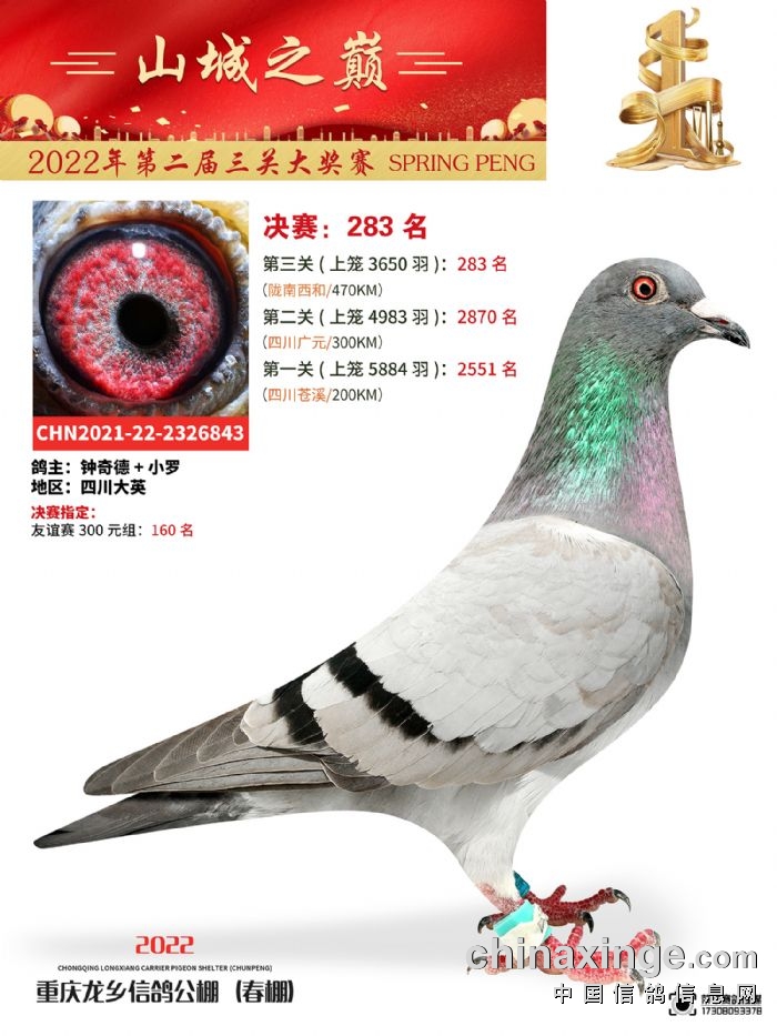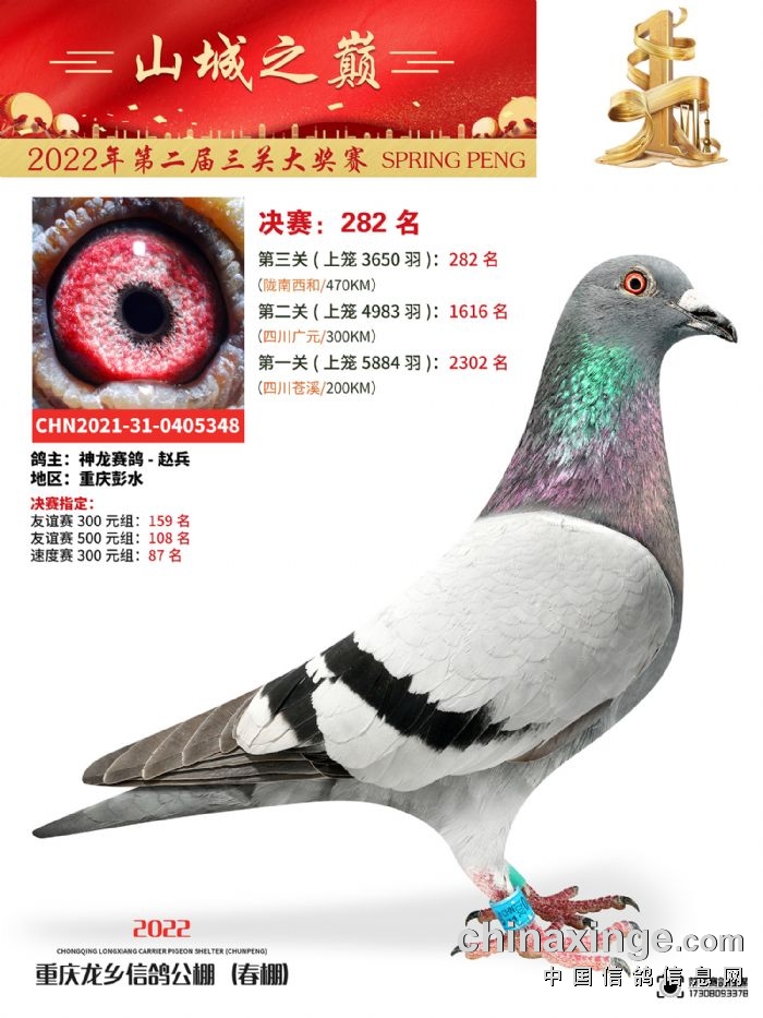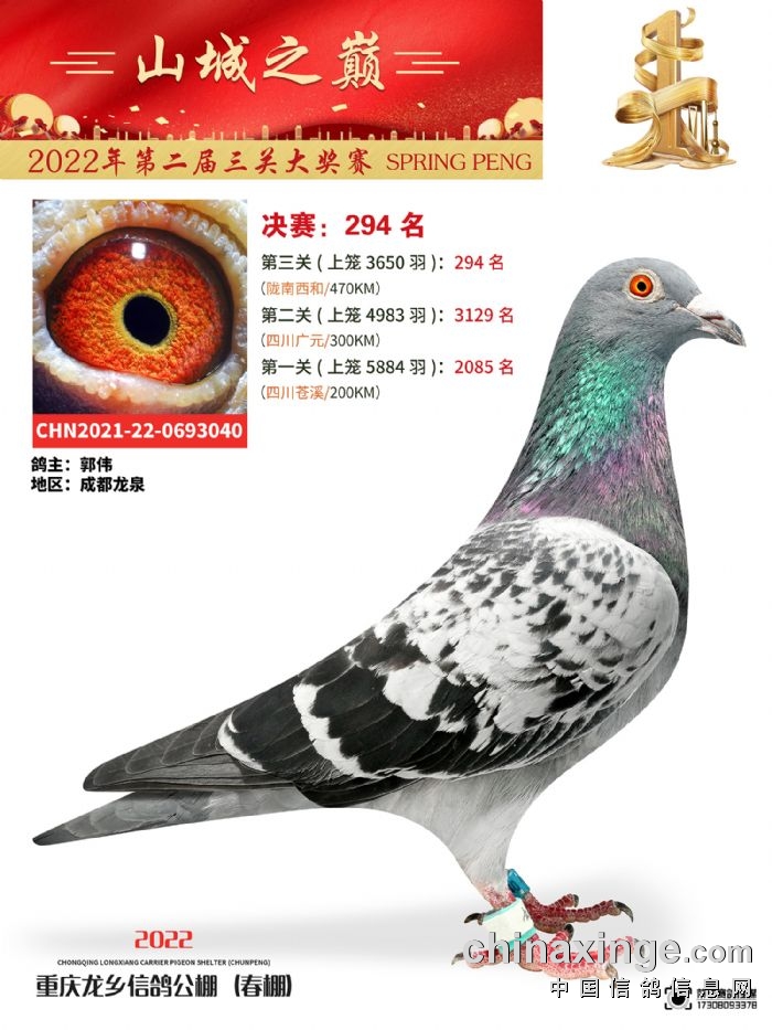 重庆龙乡信鸽公棚(春棚)2022决赛281-295名