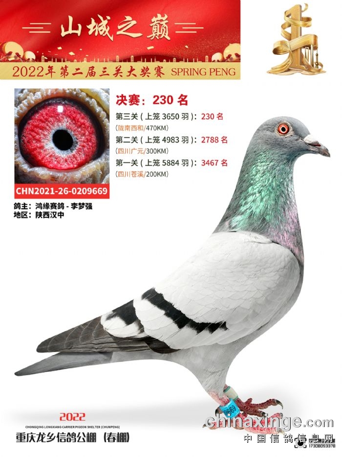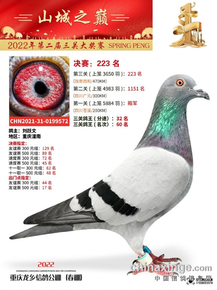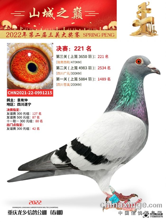 重庆龙乡信鸽公棚(春棚)2022决赛221-235名