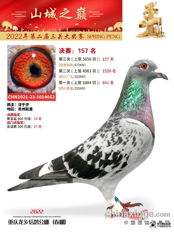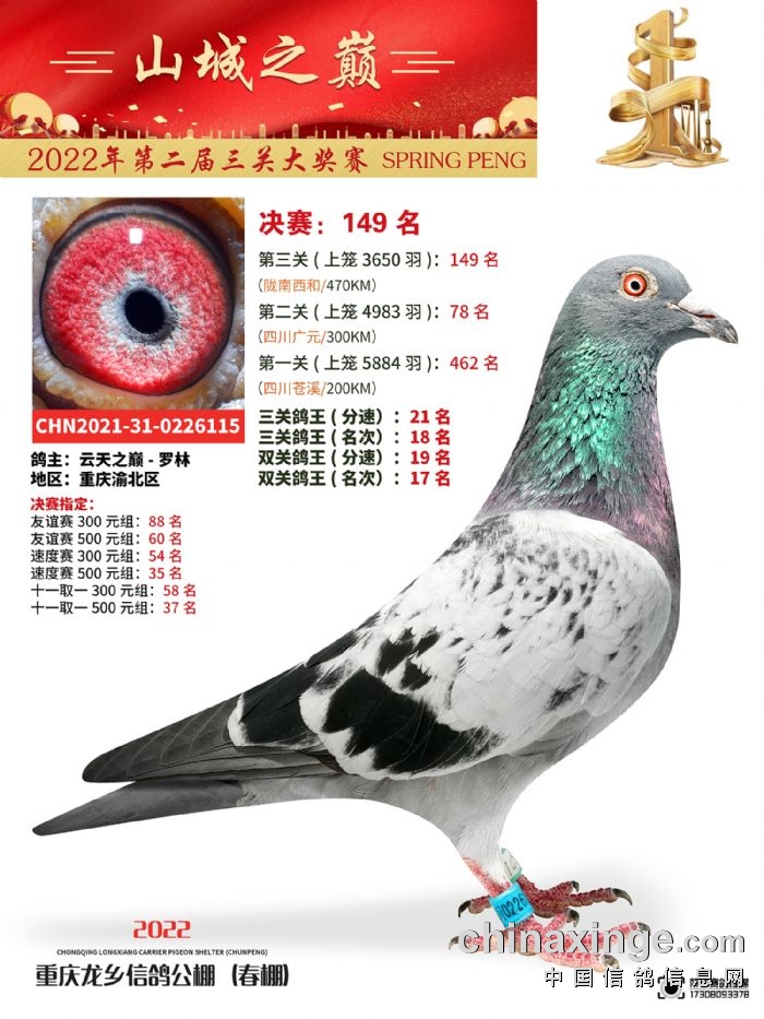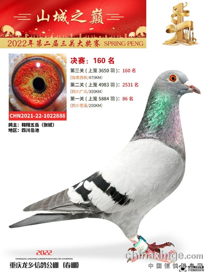 重庆龙乡信鸽公棚(春棚)2022决赛146-160名