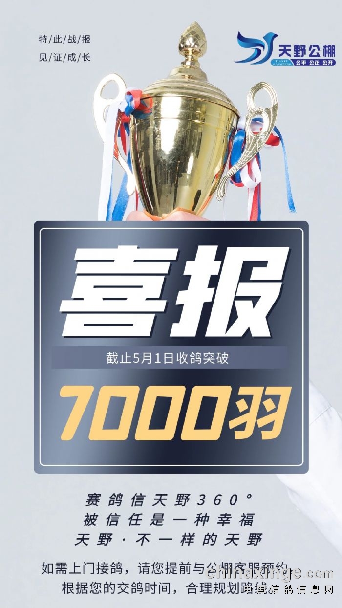 喜报(截止5月1日收鸽突破7000)