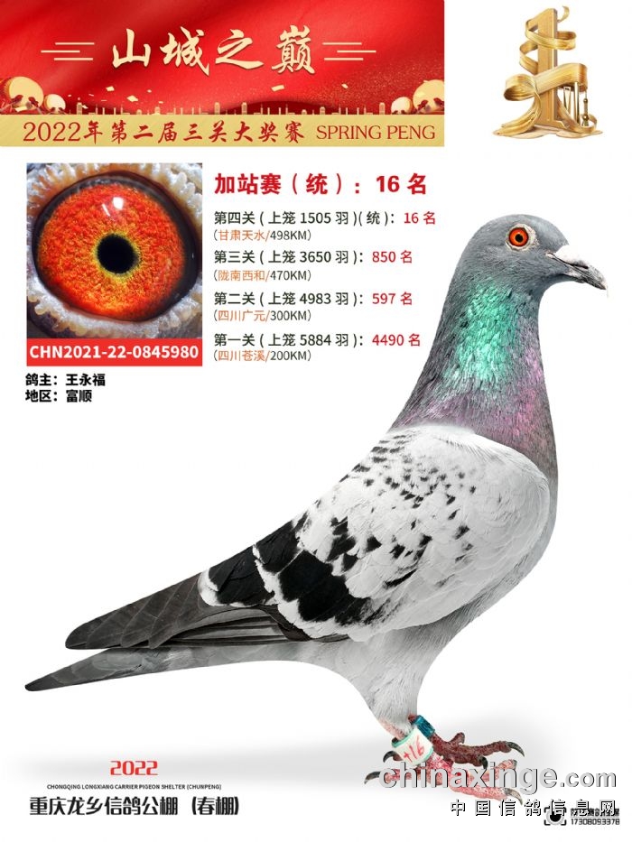 龙乡信鸽公棚(春棚)500公里加强赛冠军16-30名