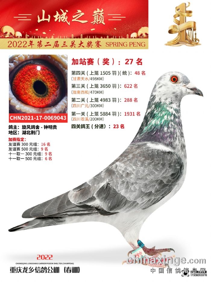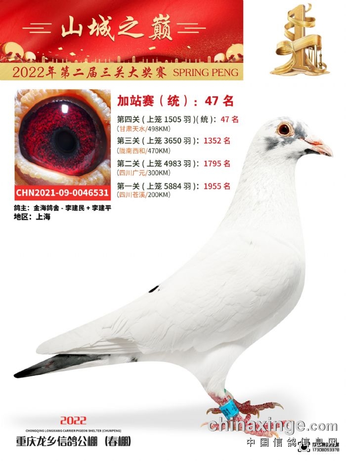 龙乡信鸽公棚(春棚)500公里加强赛冠军46-69名