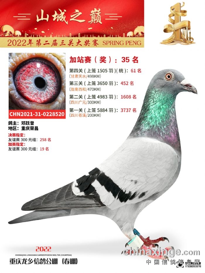 重庆龙乡信鸽公棚(春棚)预存一羽参赛费公告