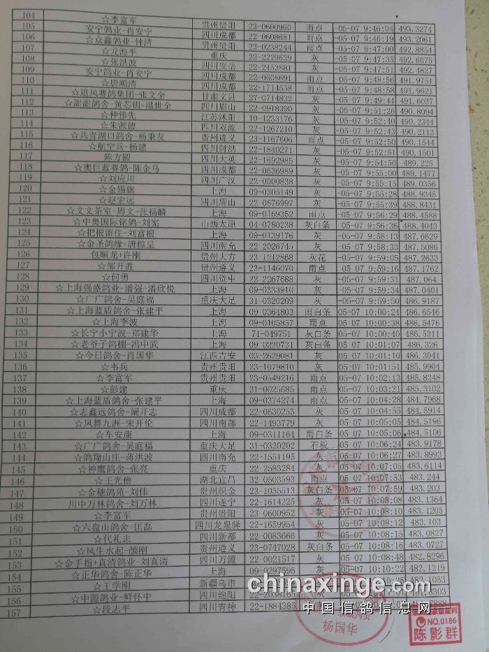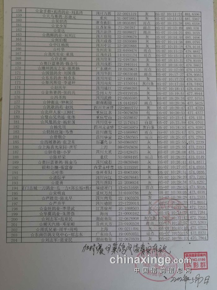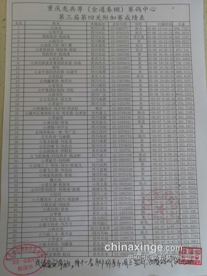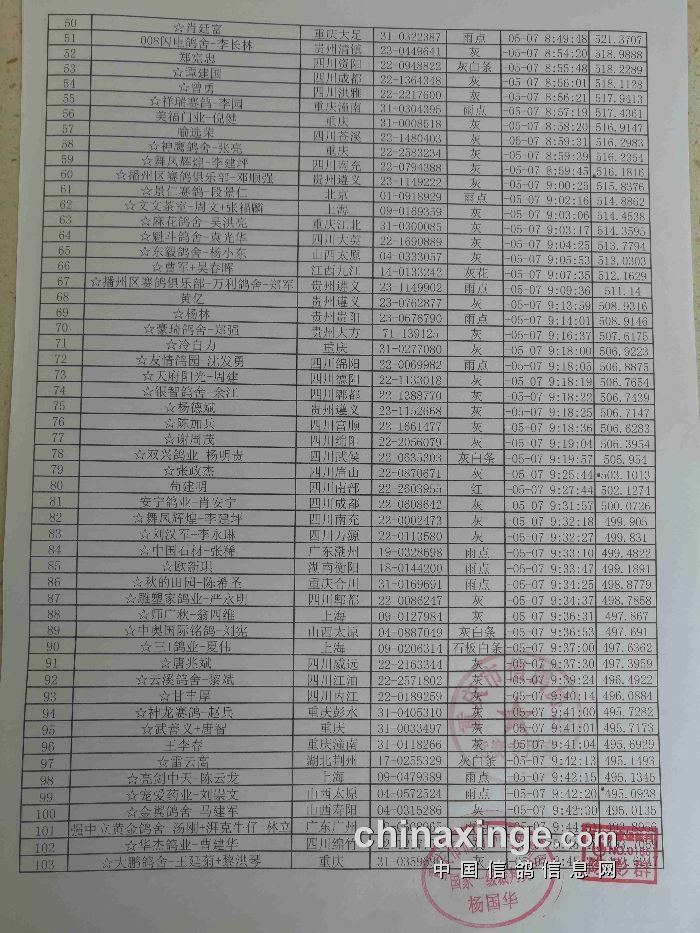重庆金通春棚第七届春赛人工查棚扫描数据(按参赛名排序)