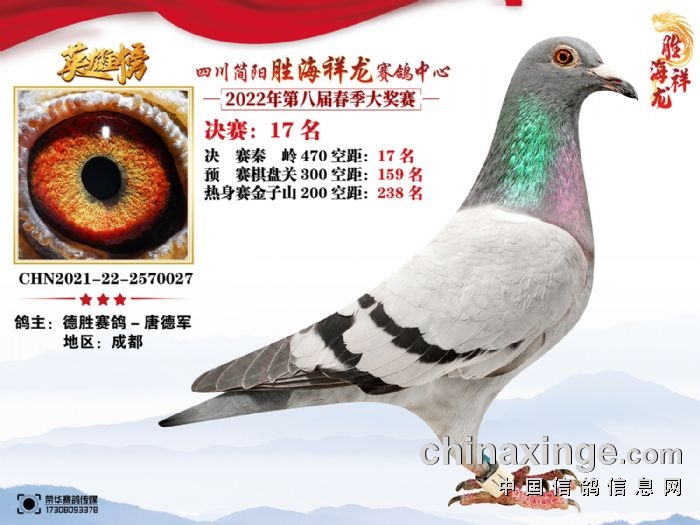 胜海祥龙赛鸽中心(2022)春季获奖鸽16-30名