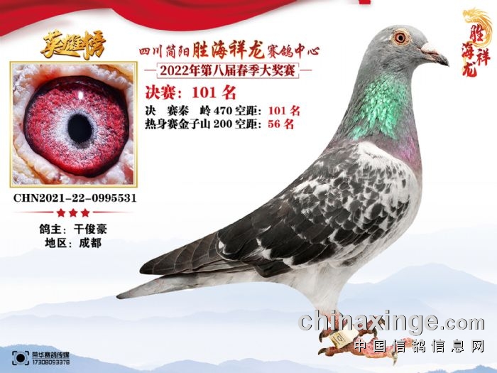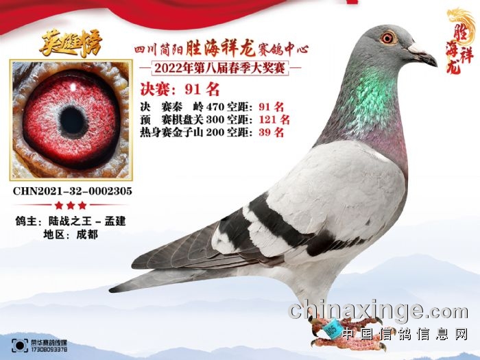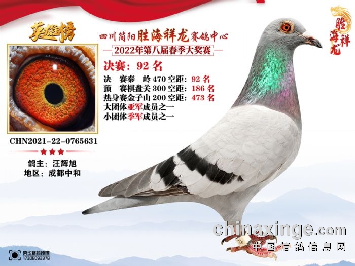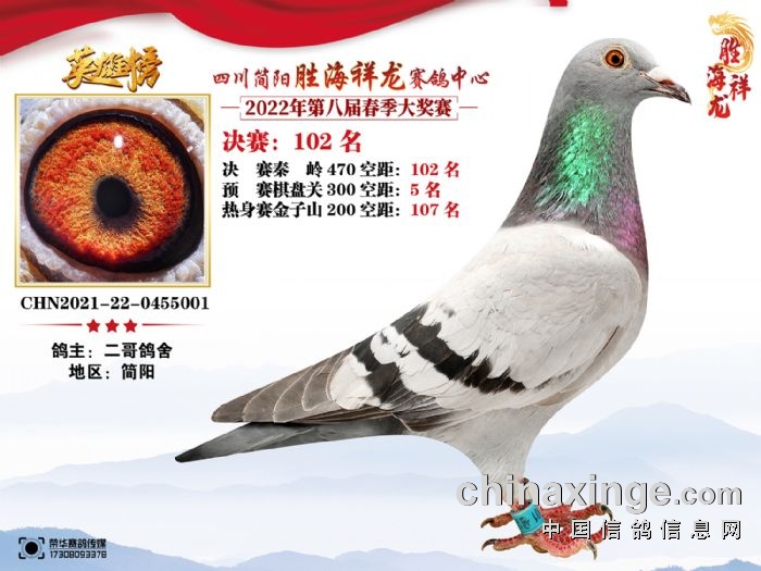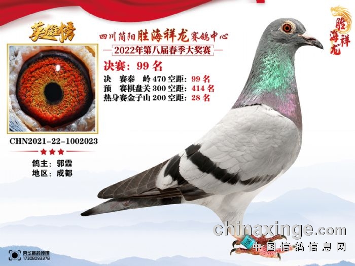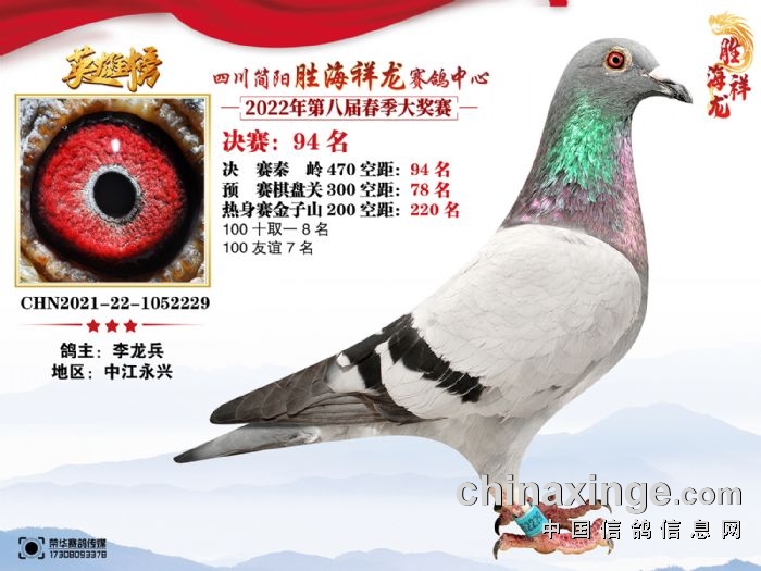 胜海祥龙赛鸽中心(2022)春季获奖鸽91-105名