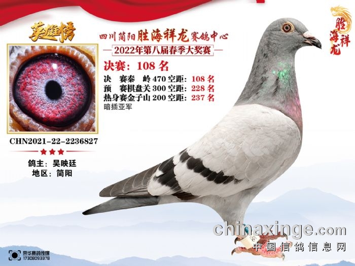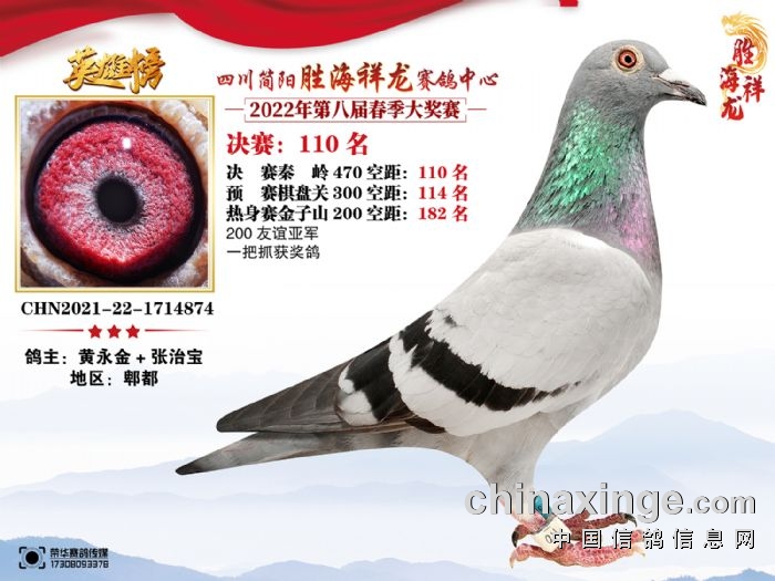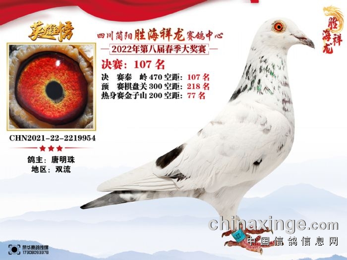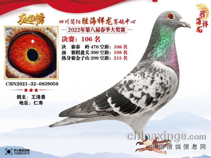 胜海祥龙赛鸽中心(2022)春季获奖鸽106-110名