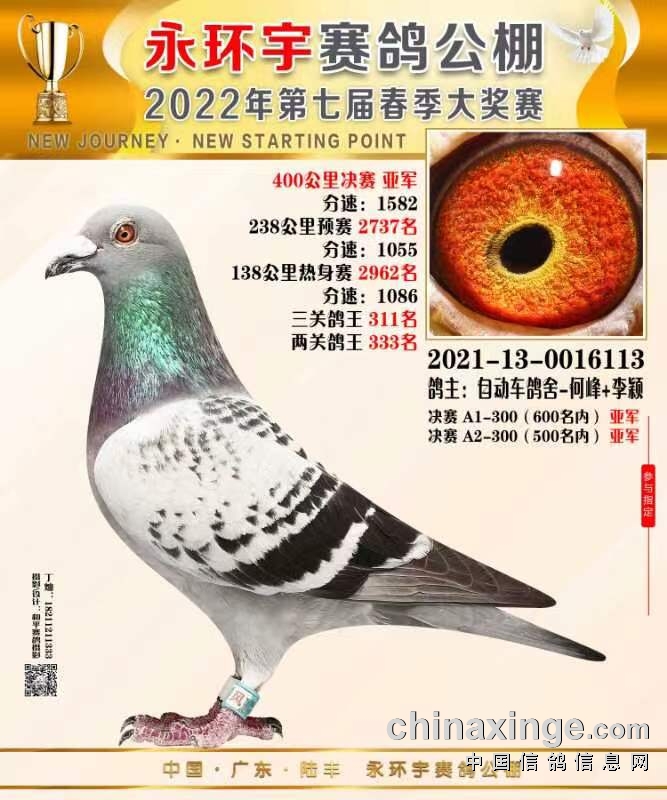 热烈祝贺我棚参赛会员自动车鸽舍-何峰+李颖