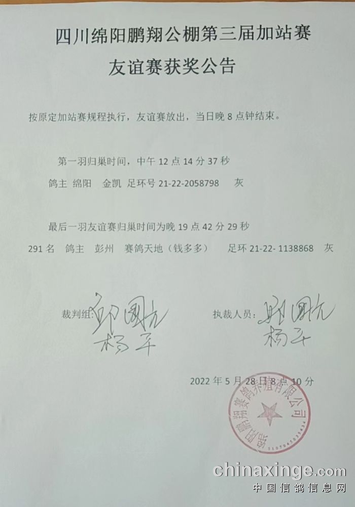 四川鹏翔公棚第二关预赛上笼数据