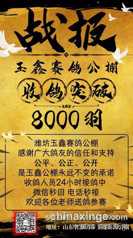 山东玉鑫赛鸽公棚 第二关380-400公里比赛 公告