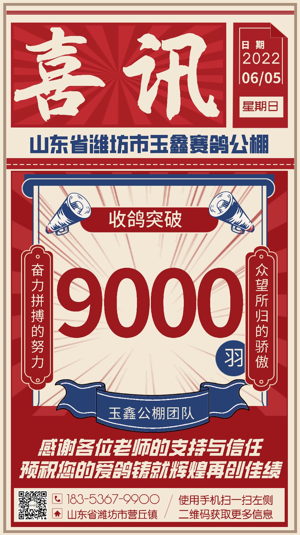 山东玉鑫赛鸽公棚 第二关380-400公里比赛 公告