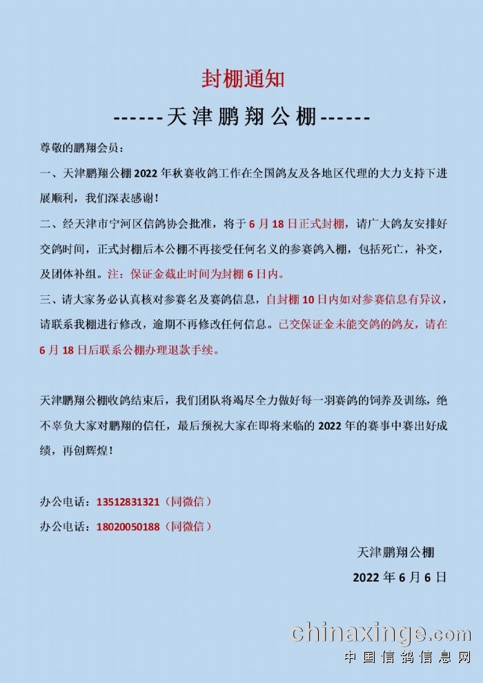 天津鹏翔公棚480-530公里决赛三关鸽王