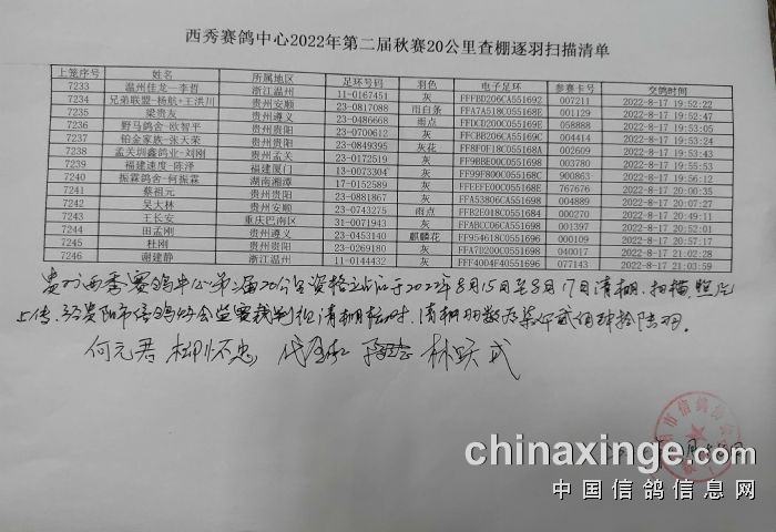 西秀赛鸽:20公里资格站逐羽扫描清单