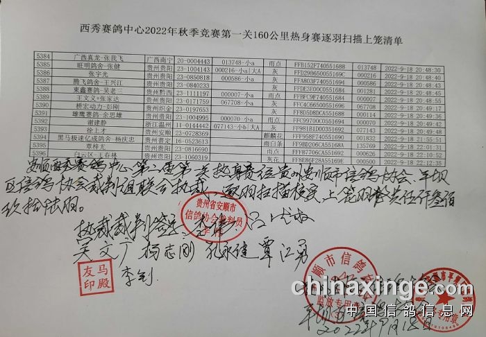 西秀赛鸽:2022年第二届秋赛第一关160公里热身赛逐羽上笼清单
