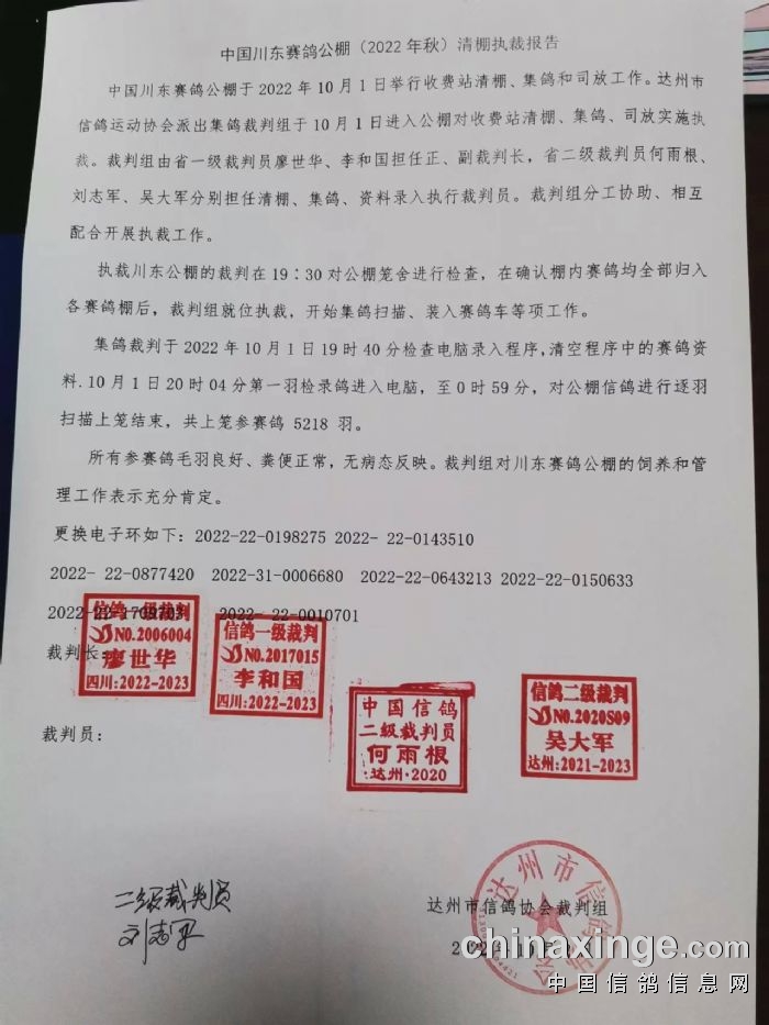 中国川东赛鸽公棚2022年秋第三届收费站执裁报告