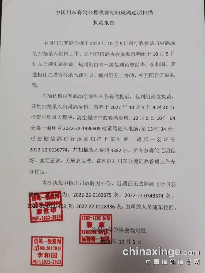 中国川东赛鸽公棚2022年秋第三届清棚收费执裁报告