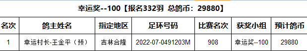 吉林环宇(大棚)420公里附加赛幸运奖获奖名单