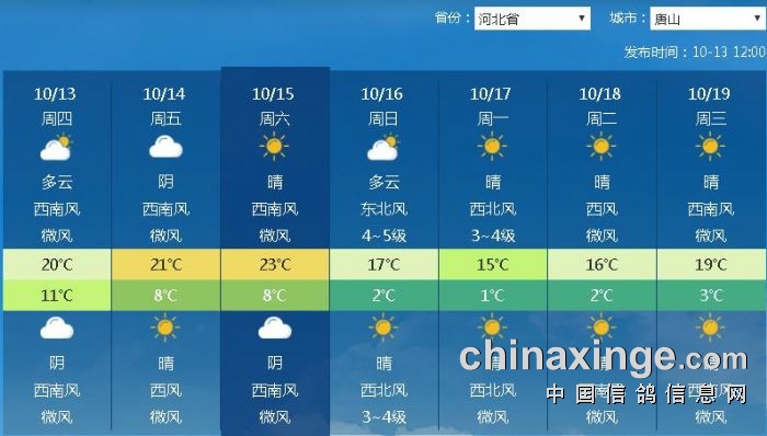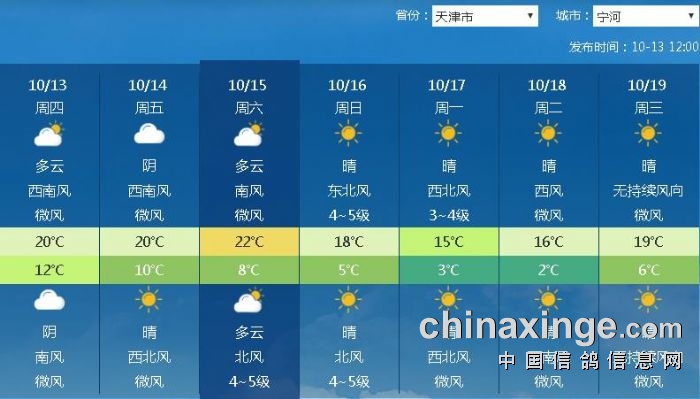 天津信泽慧海公棚180公里热身赛天气参考