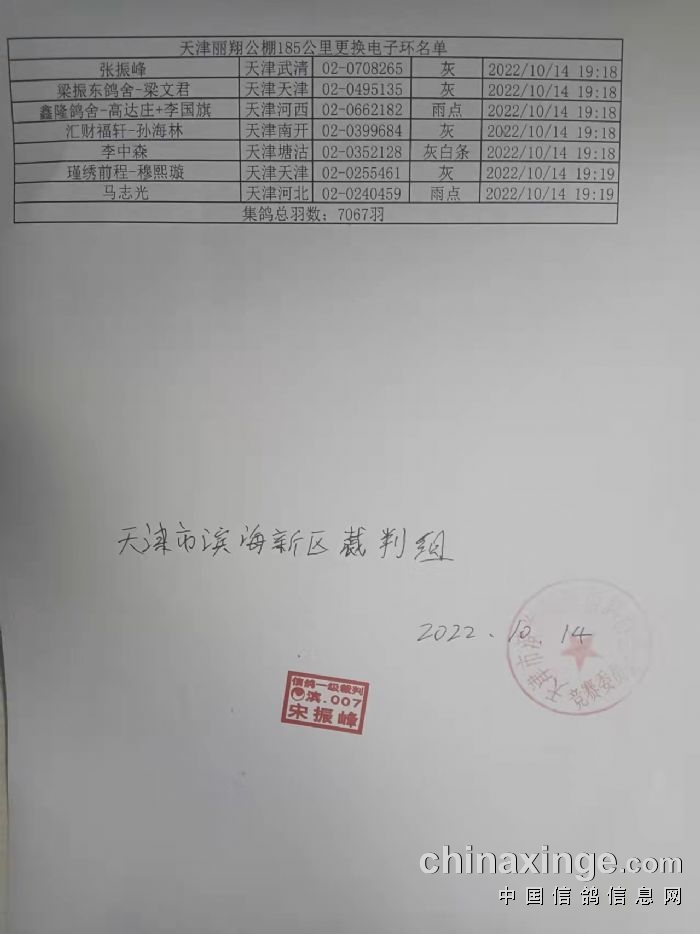 天津丽翔公棚失格鸽名单(请您三日内尽快联系办公室领回)