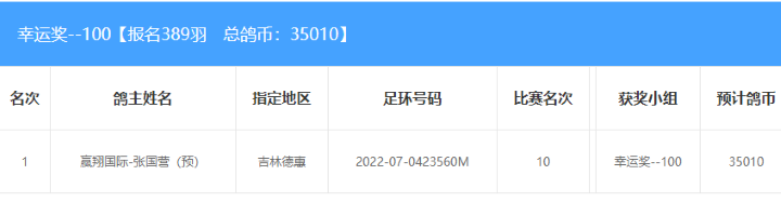 吉林环宇(大棚)520公里附加赛幸运奖获奖名单