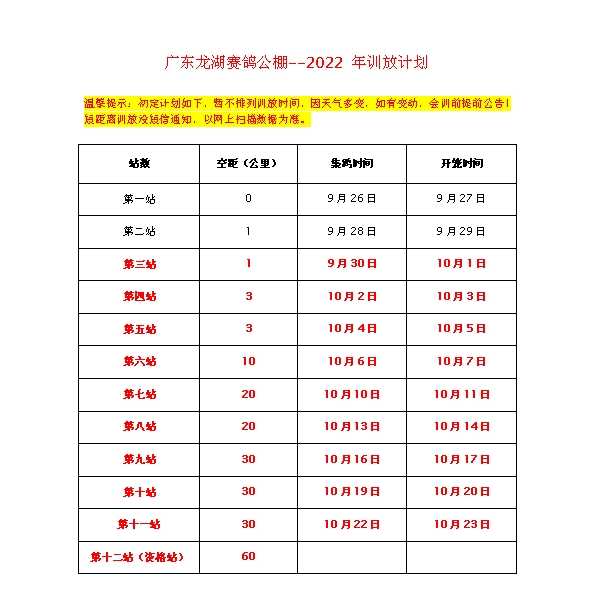 广东龙湖赛鸽公棚--2022年训放计划8