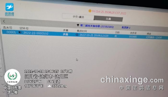 第一羽扫描时间,2022年10月21日晚20点06分,足环号:2022-22-0000102。