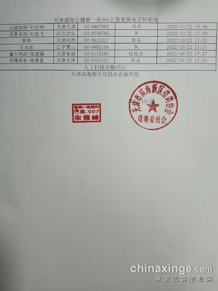 天津丽翔公棚失格鸽名单(请您三日内尽快联系办公室领回)