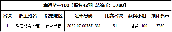 吉林环宇(大棚)560公里附加赛幸运奖获奖名单