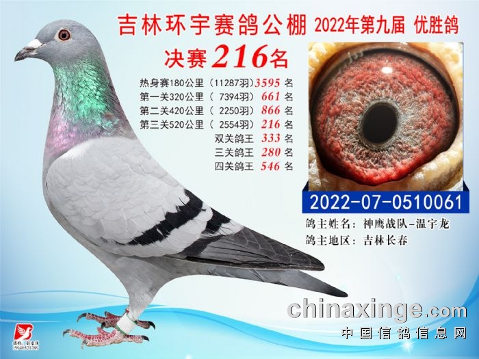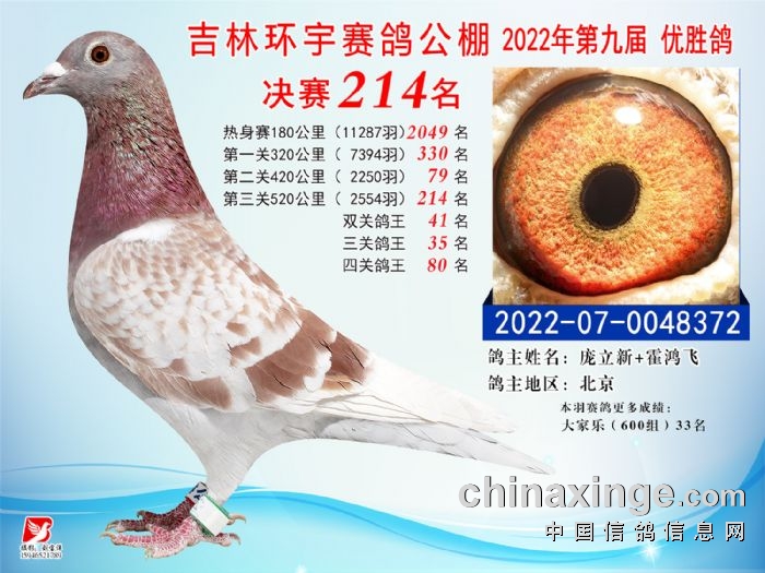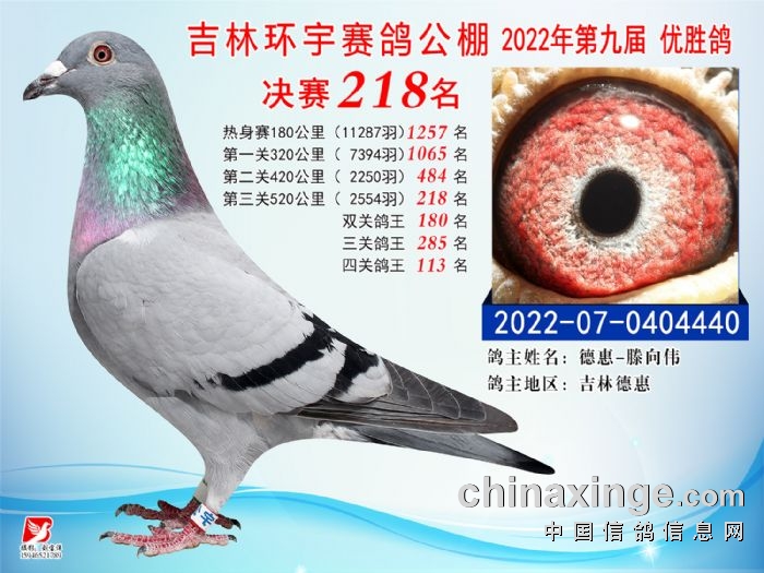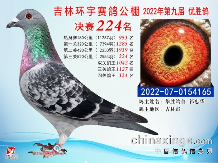 吉林环宇(小)2025年加站赛1-15名获奖鸽照片赏析