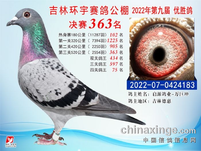 吉林环宇(小)2025年加站赛1-15名获奖鸽照片赏析