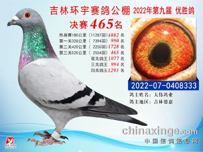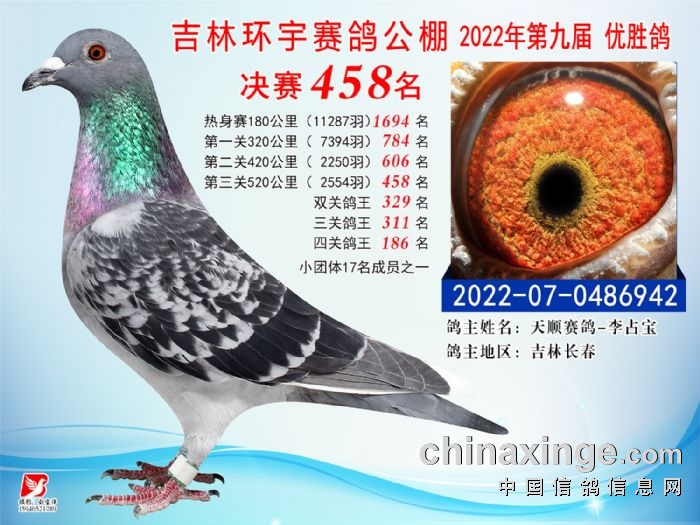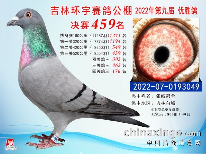 吉林环宇(小)2025年加站赛1-15名获奖鸽照片赏析